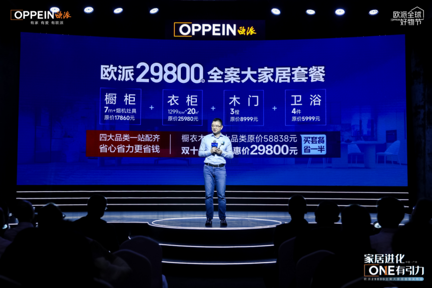 欧派在双11全球好物节之际,顺势推出29800全案大家居套餐。欧派营销第一事业部总经理介绍,29800全案大家居套餐可实现橱柜+衣柜+木门+卫浴四大品类一站配齐,从单品类惠民到橱衣木卫全品类惠民,以“一体化全案设计、一站配齐橱衣木卫、一揽子全品类交付服务”的模式,将家居装修一站式解决方案以高质价比提供给消费者。